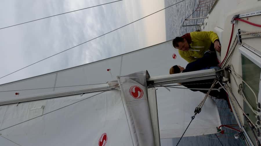 Naklonjen nama je bil dan v katerem se je vreme spreminjalo v idealnem dramaturškem loku. Depresivno sivo oblačno jutro z lahkim vetričem je zdrselo v popolno brezvetrje v katerem so nebo, kopno in morje postali eno. Iz te enosti nas je s sunki prebudila burja in narasla v močan veter, ki nas je pripeljal nazaj v pristan. V brezvetrju smo hranili dva galeba, v burji srečali delfina. In po pristanku se nam je pokazalo še sonce.